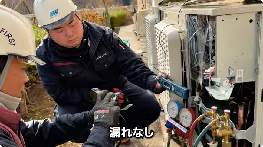 今は、空調設備の点検や修理、エアコンの設置工事、電気工事など、いろいろな現場に入っています。