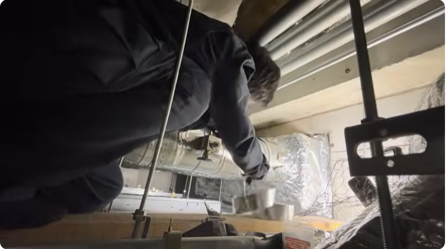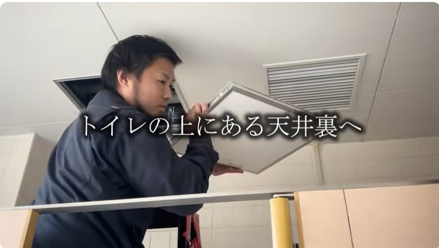 この日も天井裏で配管作業をしていたんですが、体が大きいのでなかなか大変で(笑)